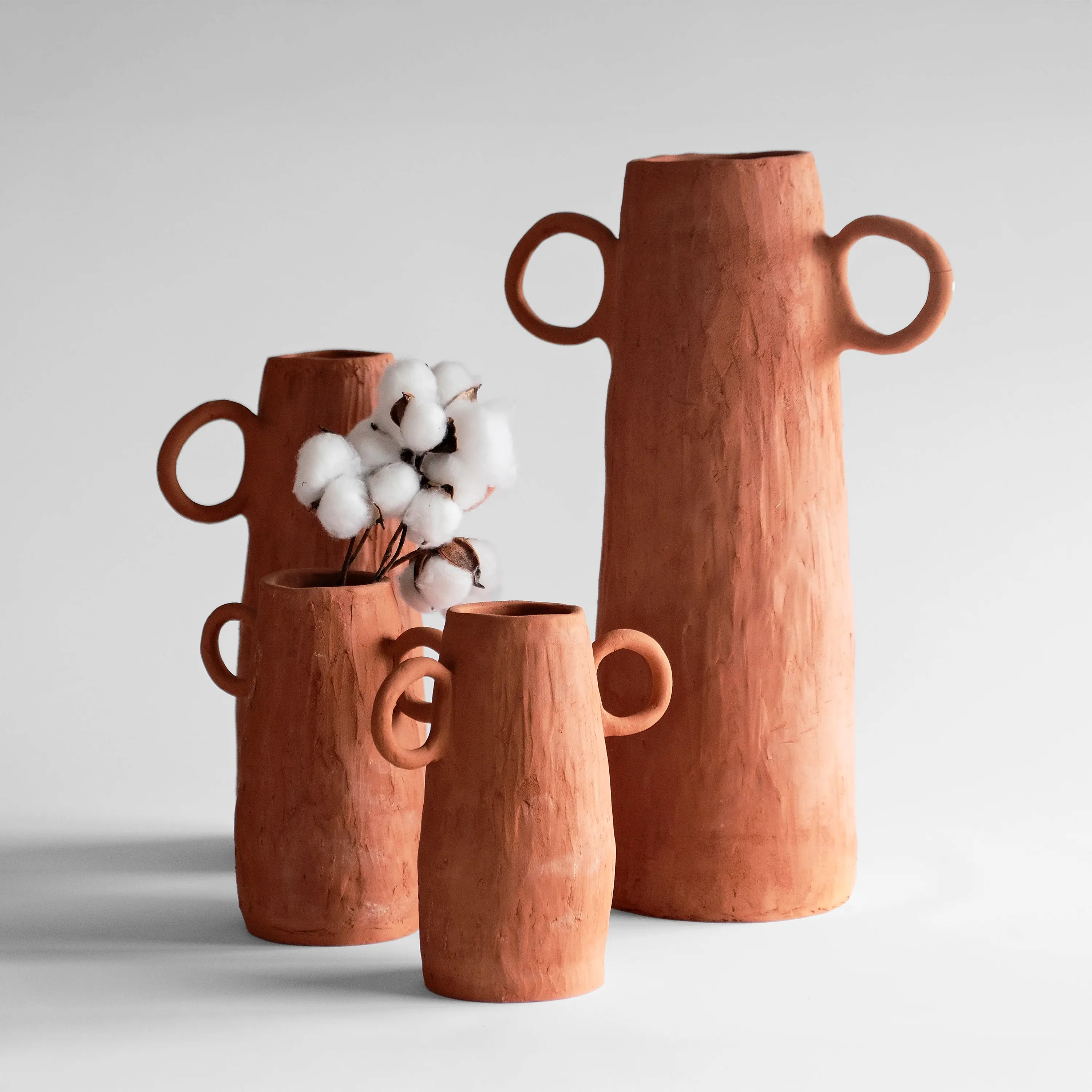 İlkel biçimlerden ilham alan Primal, toprağın sıcak tonlarını heykelsi silüetlerle buluşturuyor. Her bir parça, elde şekillendirilmiş yüzeyi ve simetriden uzak formuyla, doğanın ham gücünü ve insanın ilk ifadesini yansıtıyor.